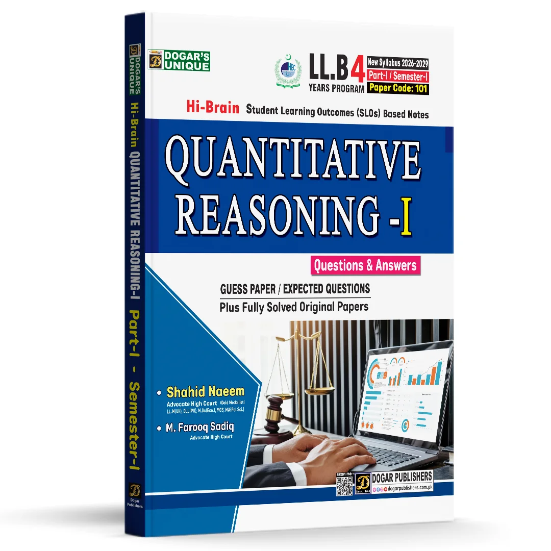 Looking for the best LLB Semester 1 Quantitative Reasoning book for your LAW exam preparation in Pakistan? LLB Semester 1 Quantitative Reasoning 4 Years Program New Syllabus 2026-29 is the one students rely on for clarity, accuracy, and exam-focused preparation. It is designed to match the updated curriculum, making it a reliable choice for those starting their legal education journey.