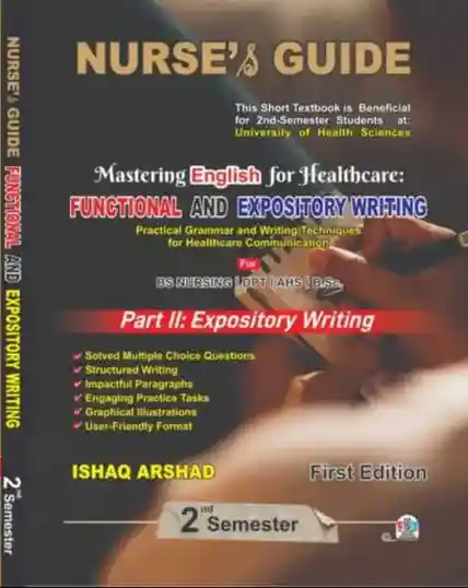 Nurse’s Guide Functional and Expository Writing Part II is an essential resource for nursing and healthcare students aiming to master academic and clinical communication. Authored by Ishaq Arshad and published by Zubair Book Depot, this guide is specifically designed for 2nd Semester students across BS Nursing, DPT, AHS, and B.Sc programs. It equips learners with functional and expository writing skills, combining structured exercises, solved multiple-choice questions, and practical grammar guidance to build clarity, purpose, and confidence in writing.