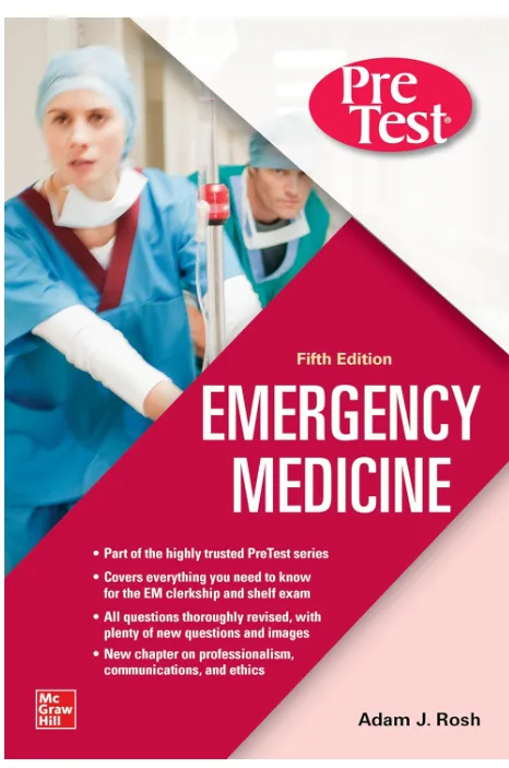 The PreTest Emergency Medicine 5th Edition is designed to support students preparing for the Emergency Medicine shelf exam, clerkship exam, and USMLE Step 2CK. Written by Adam J. Rosh and Ciara Barclay-Buchanan, and published by McGraw-Hill Education, this book delivers focused review material along with updated clinical knowledge. It includes hundreds of USMLE-style questions and detailed answer explanations that clarify both correct and incorrect options.