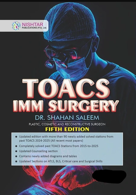 The TOACS IMM Surgery Fifth Edition is a trusted resource designed for medical graduates and trainees preparing for exams. Written by Dr. Shahan Saleem, a well-regarded surgeon with expertise in plastic surgery, cosmetic surgery, and reconstructive surgery, this edition brings together years of knowledge and updated exam-oriented content. It includes fully solved stations from past exams, covering a wide timeline from 2015 to 2025, with a special focus on the latest 2024-2025 papers. Students will also find enhanced counselling guidance, improved sections on clinical scenarios, and additional diagrams and tables that make the material easier to understand.